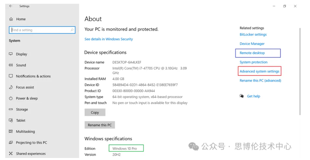 注:从Advanced system setting或Remote desktop处都可进行设置,效果是一样的。